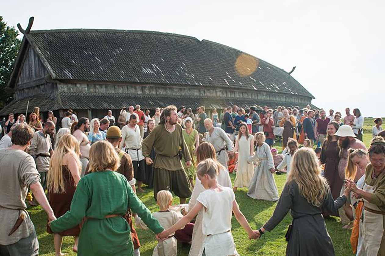 Træd ind i vikingernes verden og hør lyden af smedens hammer, duft det friskbagte brød og det stegte lam og se krigere, der forbereder sig til kamp. Hver dag fra kl. 10 til 17 forvandles Trelleborg til et blomstrende vikingesamfund, hvor både store og små kan få hænderne i historien og lære om vikingernes handel, håndværk og krigerliv.